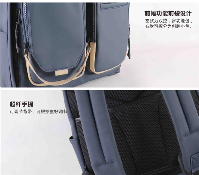 一包兩用,前幅可拆卸前袋拆下即可當(dāng)小斜挎包使用方便日常出行,大開(kāi)口,超大容量,超能裝。