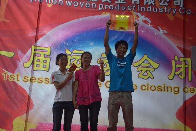 經(jīng)過(guò)一個(gè)多月的激烈比賽,于2012年6月20日森榮森杰無(wú)紡布袋第一屆運(yùn)動(dòng)會(huì)圓滿結(jié)束了。在此次運(yùn)動(dòng)會(huì)中人事部的直接指導(dǎo)下,全體員工積極參與、合作,順利地完成了秩序維護(hù),監(jiān)督,裁判等各項(xiàng)工作。